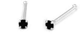 Genuine Solid .925 Sterling Silver 1.8mm Round Black Cz Nose Stud with Straight End - Sold Individually